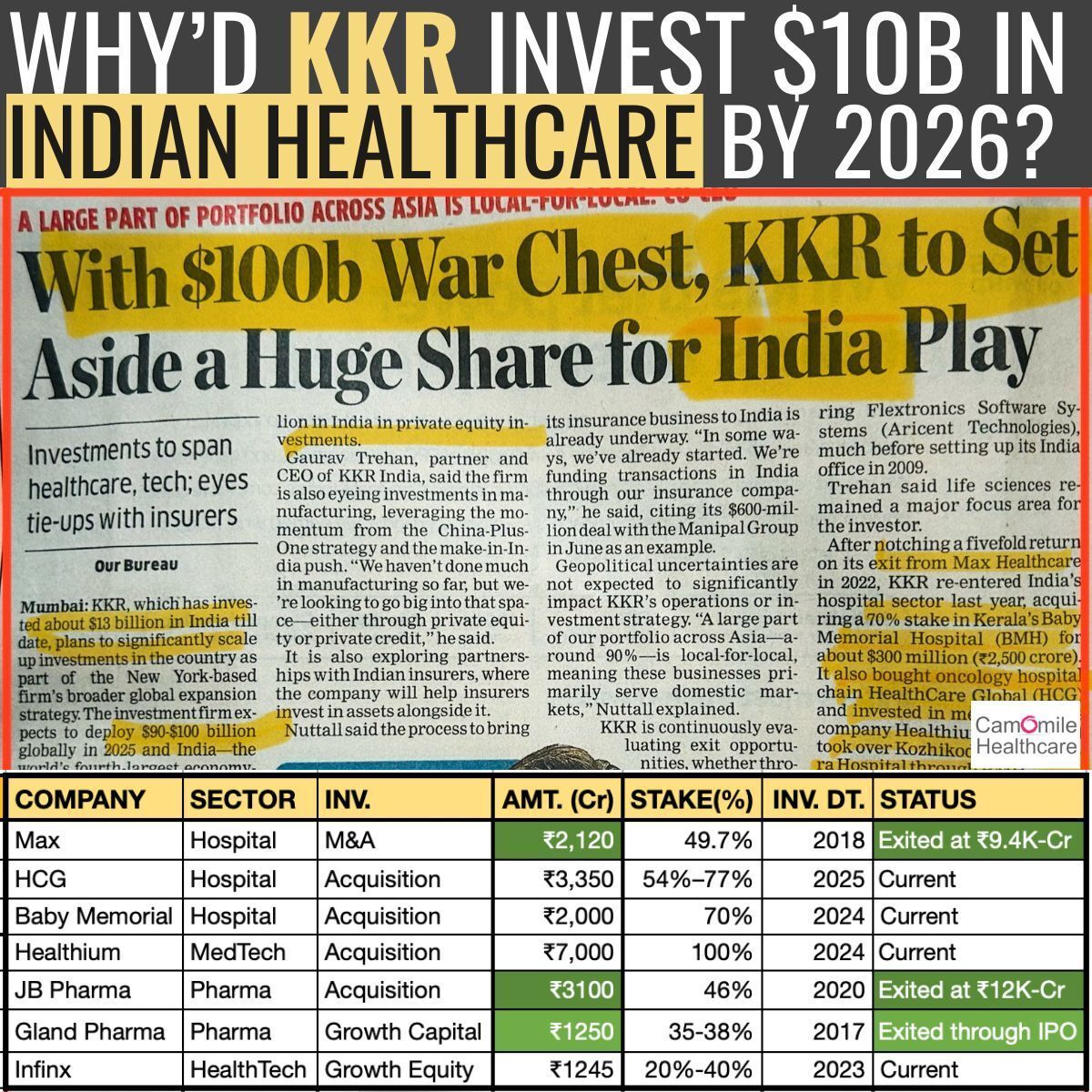 This triggered KKR to dedicate its war chest to not just Indian Hospitals but also to Pharma & MedTech sectors.