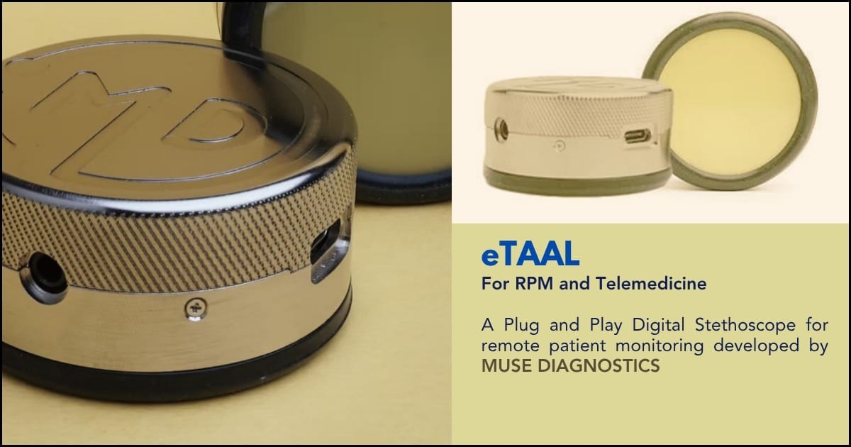 Muse Diagnostics, founded in 2014 in Bangalore, India, develops advanced, affordable medical devices with a focus on open-source solutions. Their flagship product, the eTAAL Digital Stethoscope, offers high-quality sound for telemedicine and remote patient monitoring. A digital App “eMURMUR” works with “eTAAL” as an Auscultation Software.