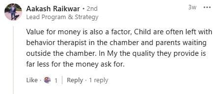 Further, concerns have been raised with regards to the therapy sessions in terms of value for money, quality of care and the way the sessions are conducted leaving the parents less than desired experience.